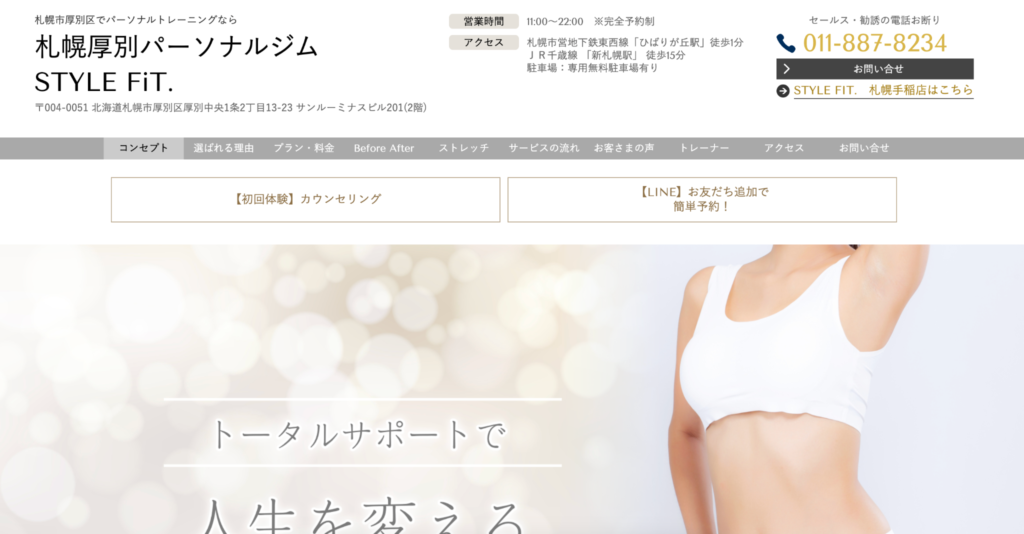 ホームページhttps://www.stylefit-sapporoatsubetsu.jp/